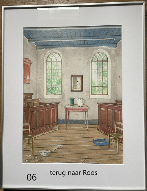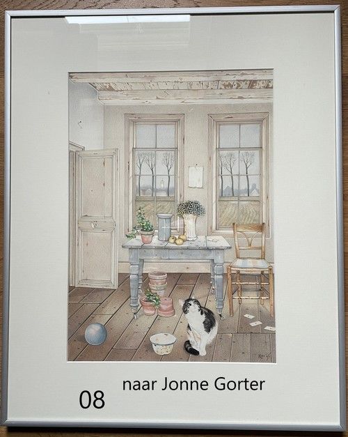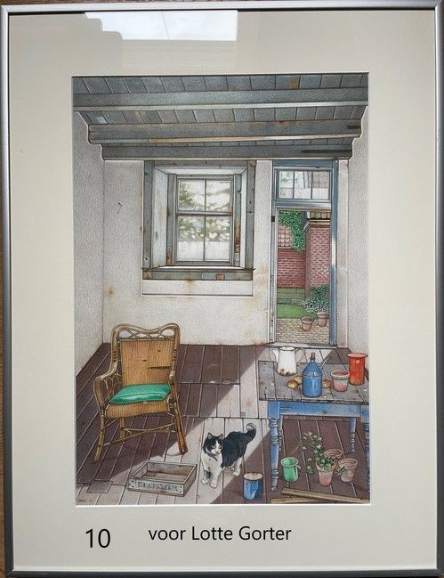 Momenteel zijn de ingelijste tekeningen bij Margreet van Ouwerkerk-Gorter, Churchillweg 16-D, Wageningen, telefoon 06-15557643